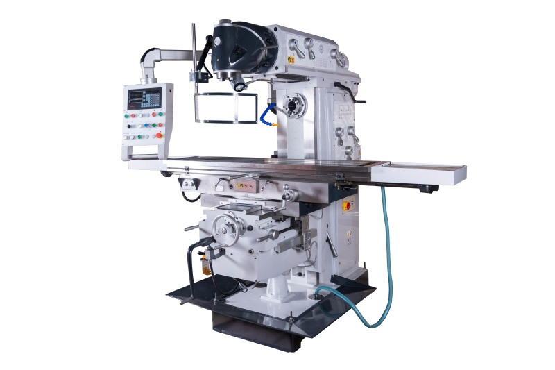 - Univerzální frézka je stroj hodný pro pro běžné i přesné horizontální a vertikální frézování. Tuhá konstrukce zabezpečuje dostatečnou kvalitu opracování ocelových materiálů, litiny, barevných kovů a dalších materiálů v téměř všech pracovních režimech. Kalené a jemně broušené obdélníkové vedení zajišťuje vysokou pracovní tuhost a přesnost. Přehledně umístěné ovládací prvky na otočném panelu pro nastavení otáček a jemné strojní posuvy ve všech osách (zajištěno pomocí servomotoru), zajišťují bezproblémové najetí do požadované polohy. Naopak, díky rychloposuvu ve všech třech osách ušetříte čas při přejezdech na počáteční pozice frézování. Hlava vertikálního vřetena je nastavitelná pod jakýmkoliv úhlem a díky snadnému a rychlému přenastavení lze stroj použít pro horizontální obrábění. Centrální mazání všech tří os a převodovky v olejových lázní jsou samozřejmostí.