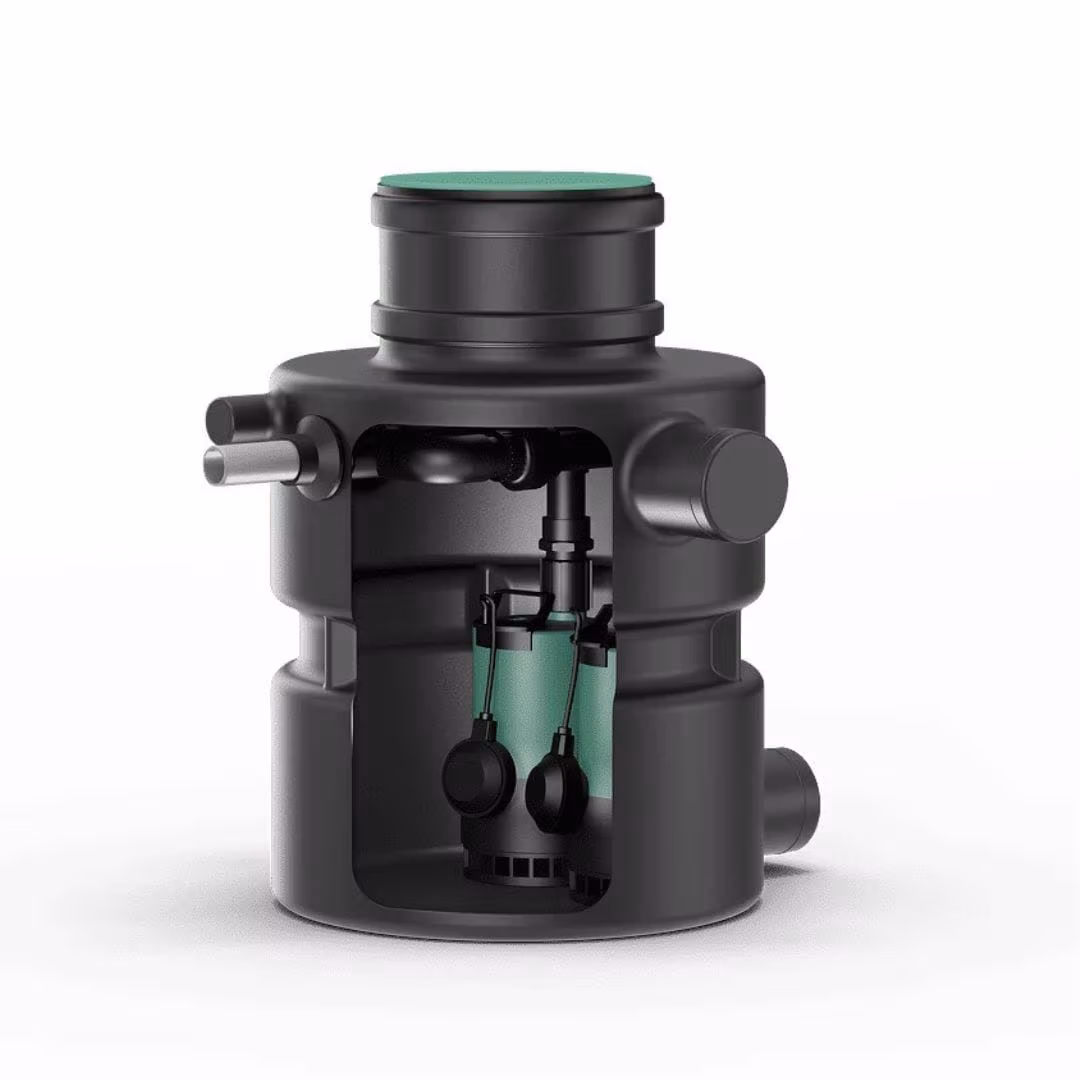 Kompletně vystrojená čerpací stanice na mírně znečištěnou odpadní vodu bez fekálií s maximální teplotou média 35 °C a krátkodobě do 3 minut až 60 °C. Ideální pro prádelny, sklepy a garáže.